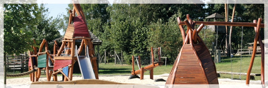 | - Tischtennis - Tisch - 2 Sitzgruppen - Holzwippe - Schwebebalken - 3 Sandkästen - Reck - Rodelberg - Edelstahlrutsche |